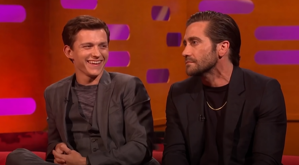 Jake Jake Gyllenhaal was asked if he flies in the movie Spider-Man: Far from Home. He responds that he does in this movie and generally in real life. He says it with a serious face, but everyone else gets the joke, laughs and they continue the conversation in a more relaxed state.