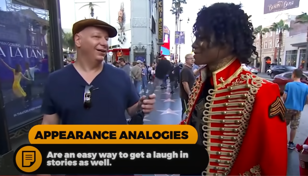 Another type of joke that will get you an easy laugh would be the Appearance Analogy or simply put the “you look like” joke. It is finding something about the other person that can be teased without offending them.